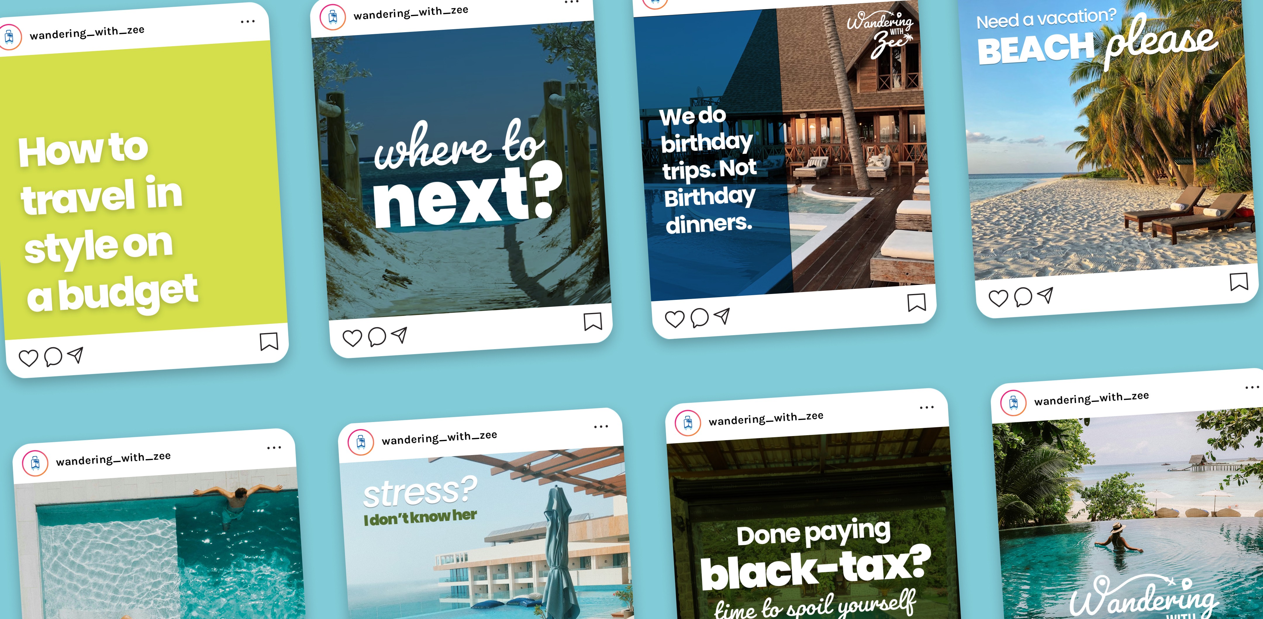 Wandering with Zee is a local travel agency devoted to provided personal experiences for young, black adventurers. Our goal was to create an all-inclusive, accessible and affordable brand design. The mission of the brand is to travel in style without breaking the bank.